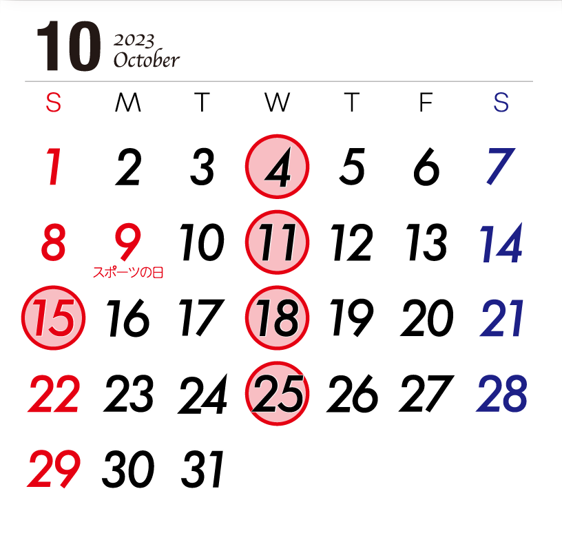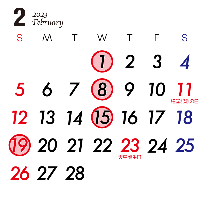 そのほかは、例月と同じ定休日となっております。