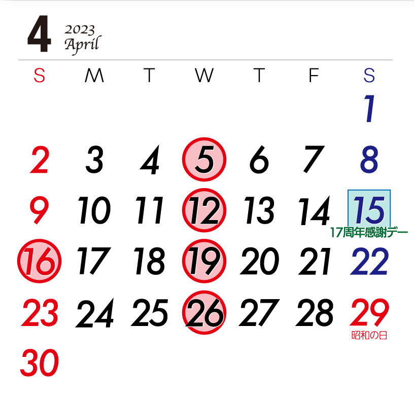 16日(日)は例月定休日ですが、休日前日にあたるため営業いたします(17日(祝)も営業)。ご来店をお待ちしております。