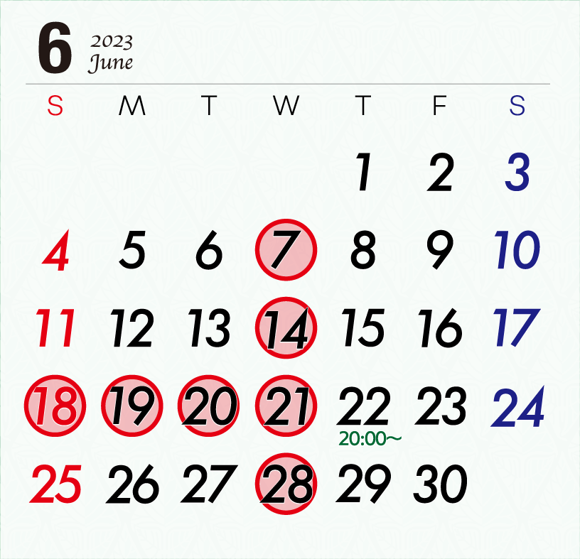 6月の営業は、右の通りです。