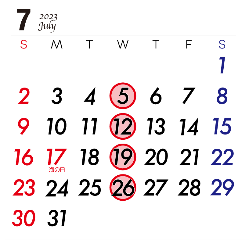 7月の営業は、右の通りです。