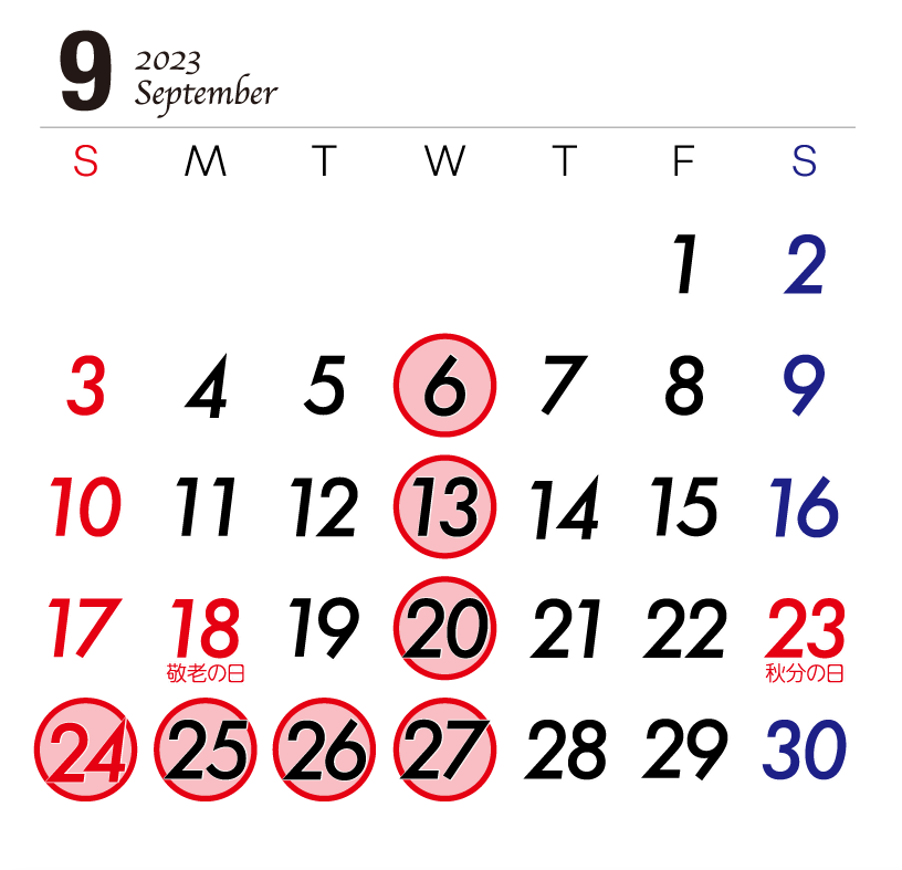 9月の営業は、右のようになっております。