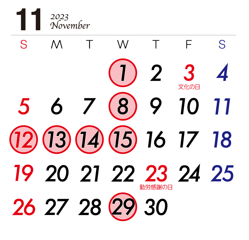 11月の営業は、右のようになっております